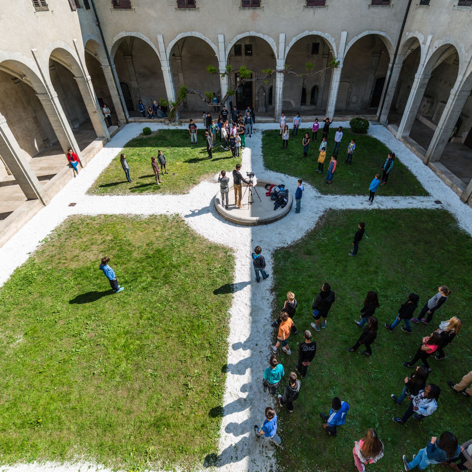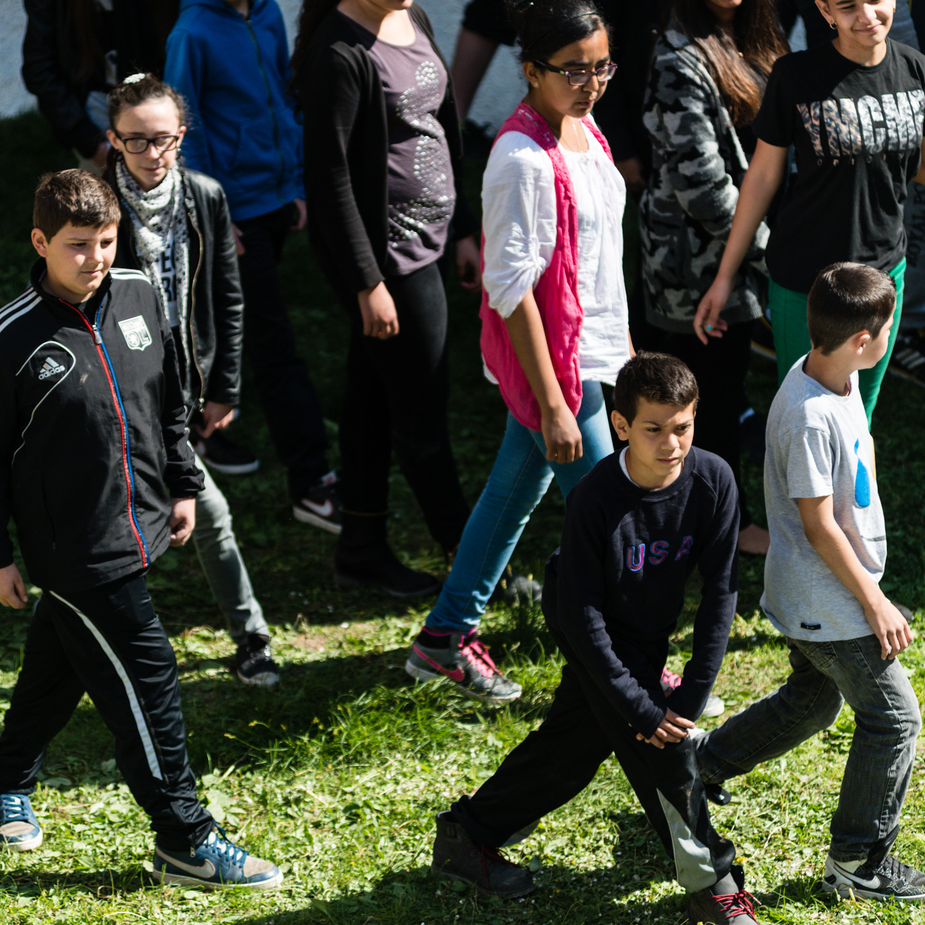 Il est proposé aux élèves une ré-appropriation de ces gestes dansés suivant une question : c’était quoi la danse au 14e siècle ? Ces danses sont peu connues car aucun texte ne les décrit. De plus, la notation musicale à l’époque s’inscrivait sur une portée à 4 lignes rendant impossible l’interprétation des phrases mélodiques. Cette absence de repère visuel est une parfaite opportunité pour laisser un imaginaire se constituer avec une recherche des gestes tels que les élèves pourront les inventer. Bien sûr la danse s’orientera vers les danses folkloriques en groupe ou en duo. Mais une réinterprétation contemporaine du mouvement.
